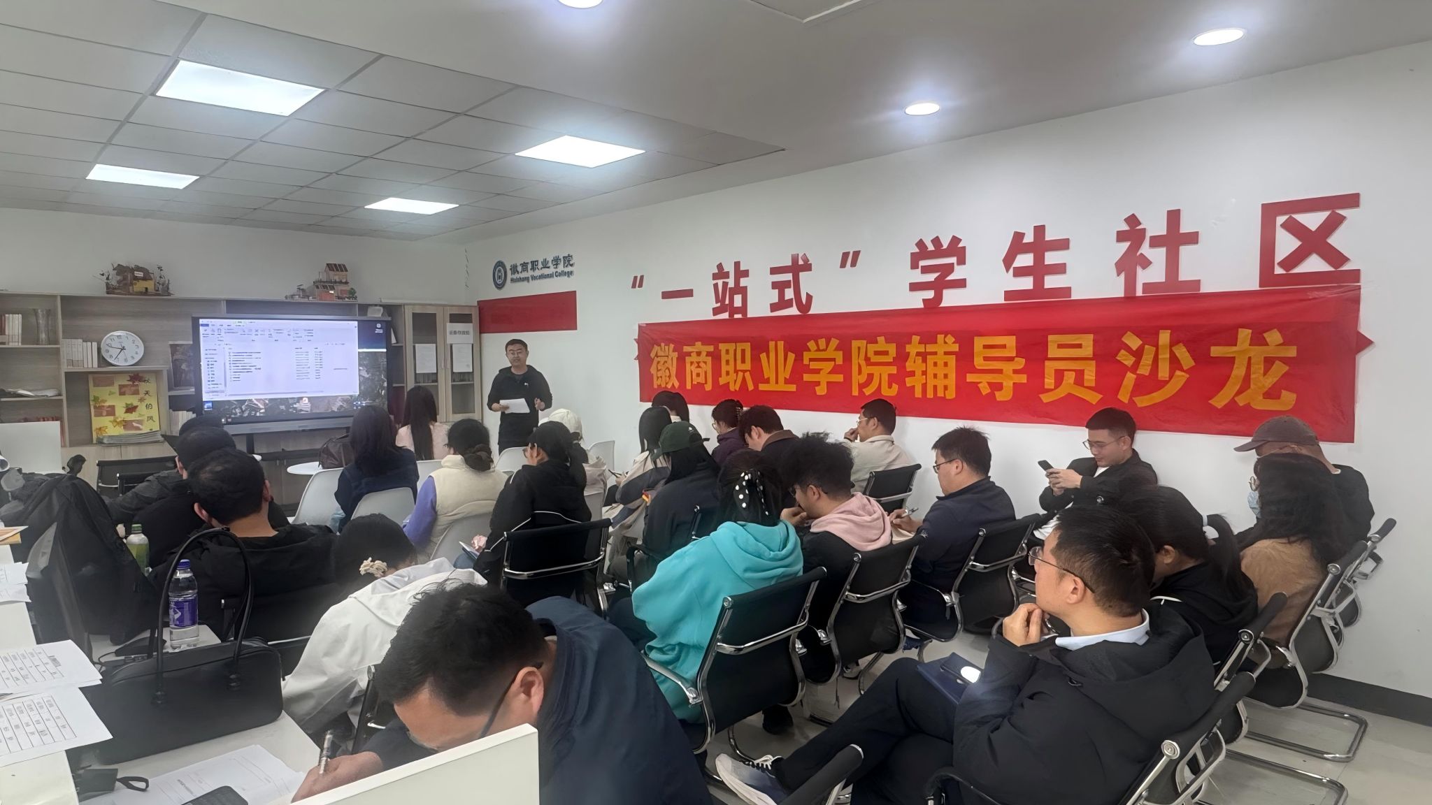 为进一步强化辅导员学生安全管理能力,搭建安全工作经验交流平台,筑牢校园安全育人防线,切实守护学生身心健康与生命安全,我校第九期辅导员沙龙“青春无恙 平安相伴——学生安全工作经验交流分享”在紫蓬校区“一站式”学生社区服务中心顺利举行。本次活动由学生处主办,汽车与智能制造学院承办,活动由汽车与智能制造学院副院长贾屿主持。全体专职辅导员、各学院党总支副书记及学生处相关工作人员参会。